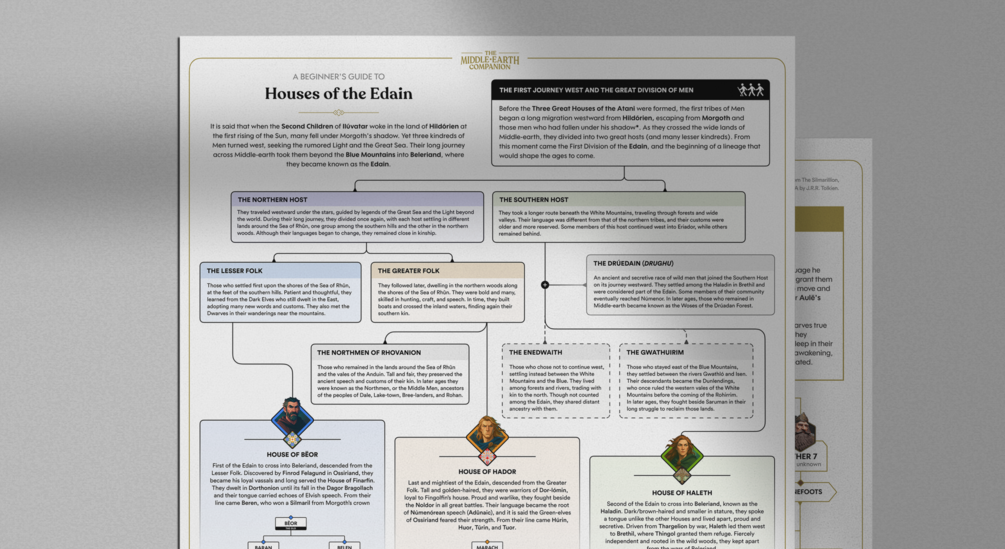 That’s why I created this visual guide, to help you explore and understand the origins, journeys, and interwoven lineages of the Edain. Within it, you’ll find the story of the Northern and Southern Hosts, the Houses of Bëor, Haleth, and Hador, and how their bloodlines unite in Eärendil, Elrond, and Aragorn.
