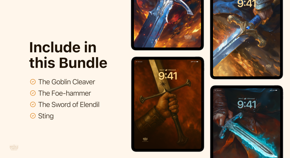 Feel the power of the greatest Swords of Arda with this amazing wallpaper bundle. Made with a beautiful illustration that will transform your device screen into an artifact of power.